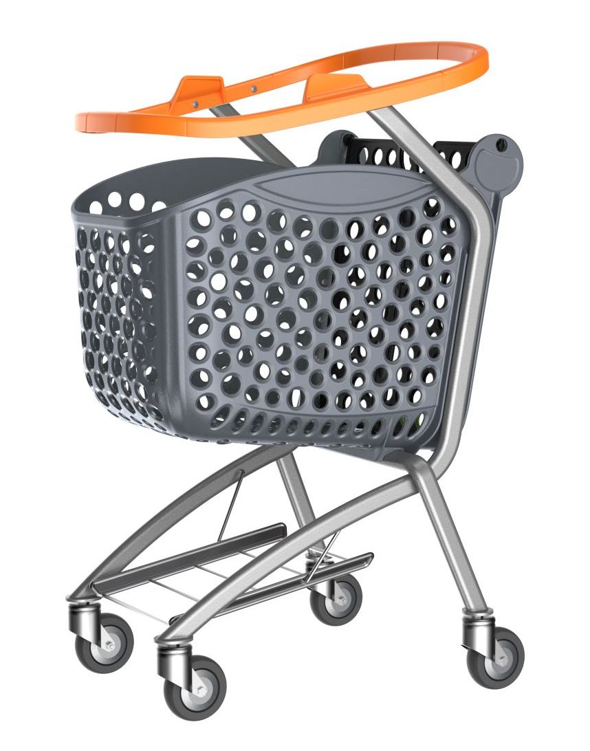 Plastkorvi ja metallraamiga mitmekülgne ostukäru. Praktiline 360º käepide, mille külge saab riputada avatud korduvakasutatava kandekoti.Omadused